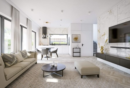 Nowe domy w Komornikach, są idealną propozycją dla tych, którzy cenią sobie nowoczesne i funkcjonalne wnętrza oraz chwile spędzone z rodziną we własnym ogrodzie. Nowa inwestycja jest ostatnią linią zabudowy na Osiedlu Zacisze, a za nią roztacza się już tylko sielski widok na łąki. Do każdego domu przynależy garaż plus miejsce postojowe.